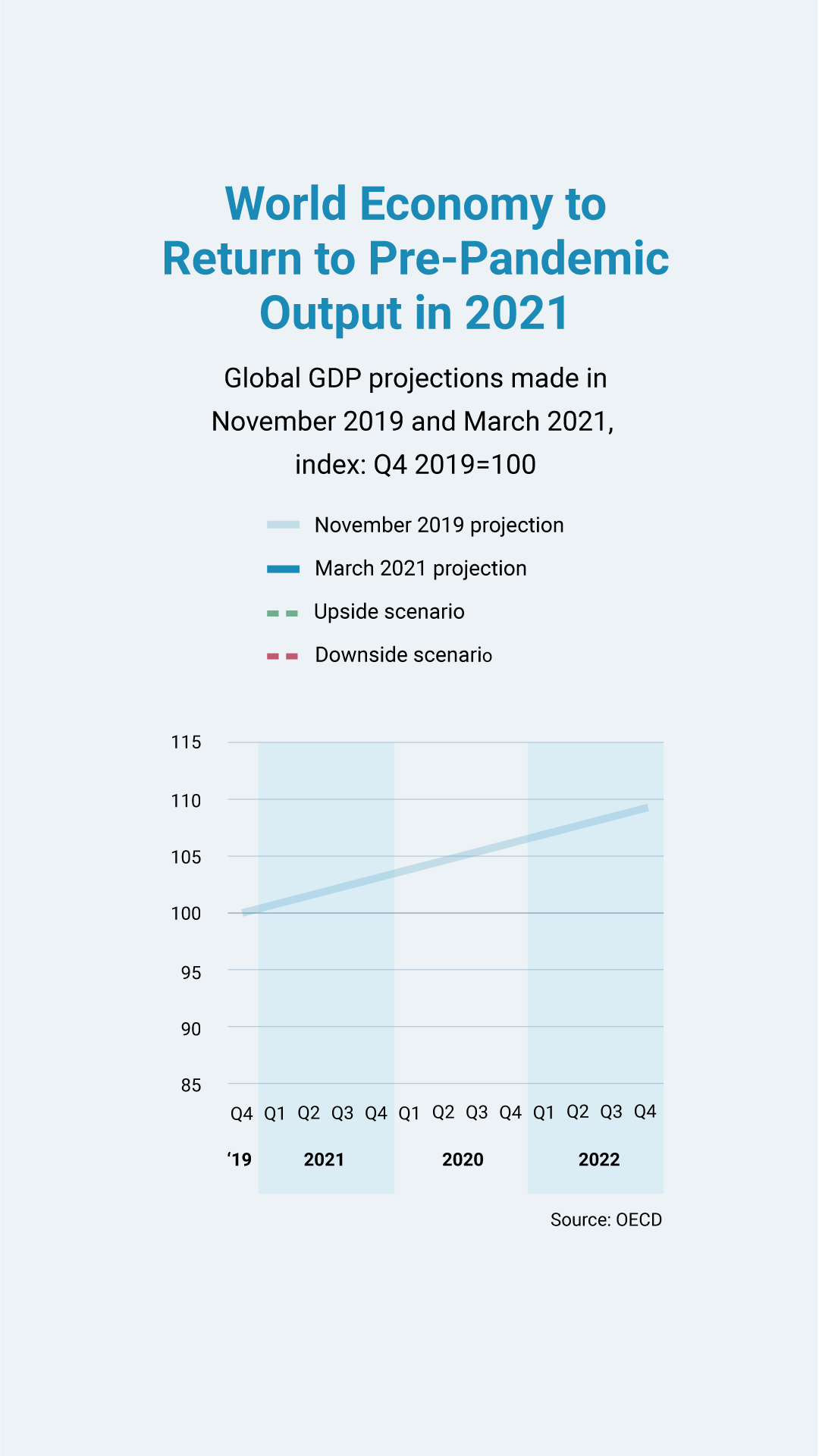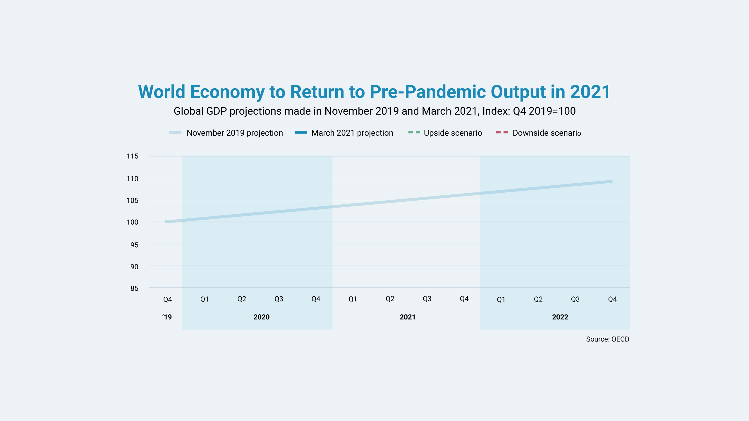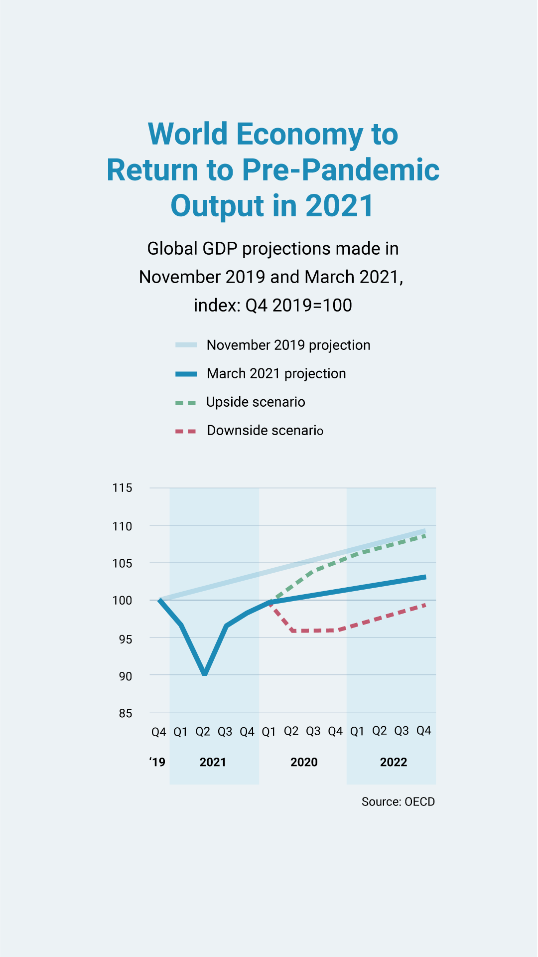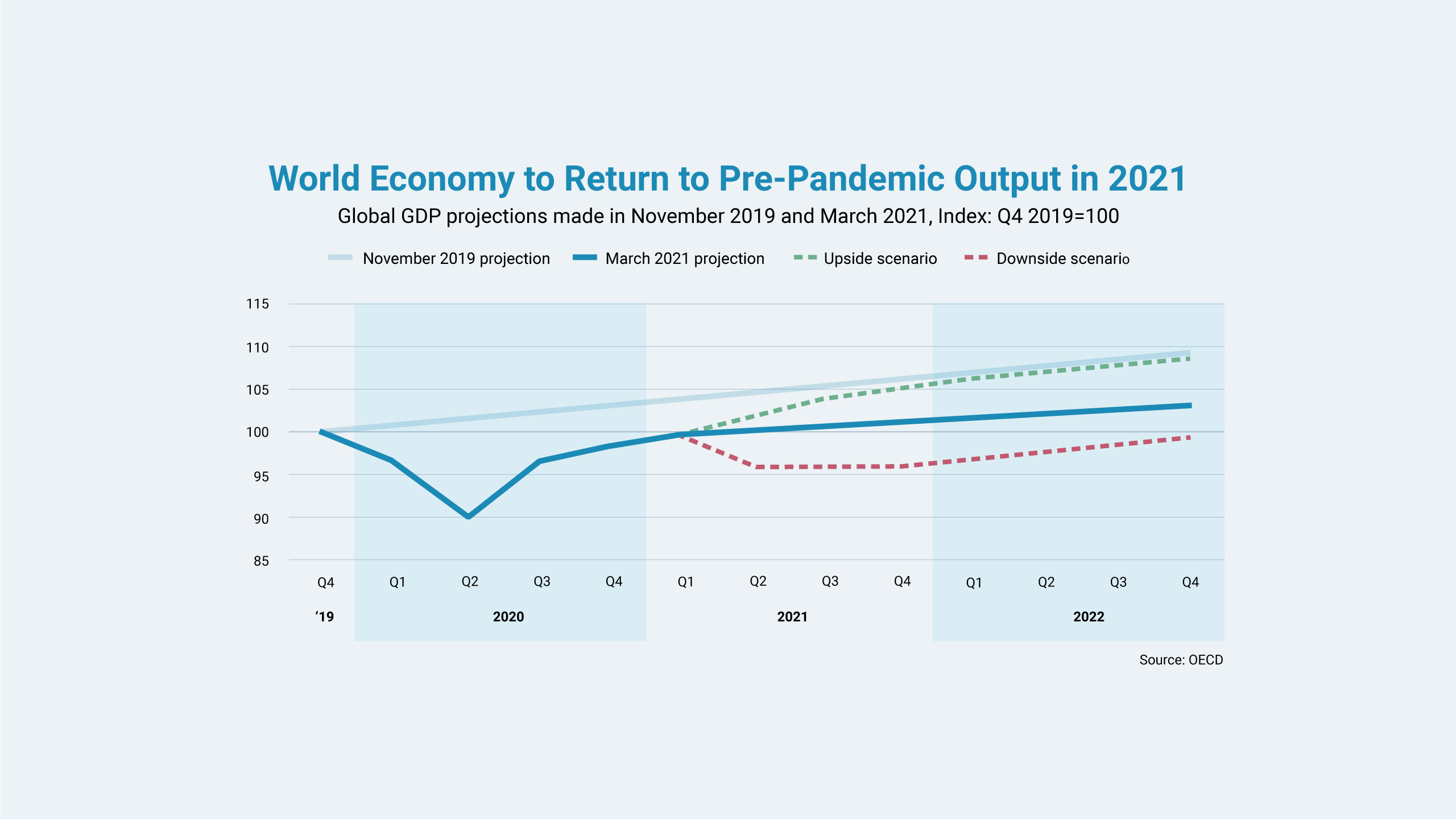Yet despite the turmoil, the Organisation for Economic Co-operation and Development has made cautiously optimistic projections in its latest economic report, expecting the global economy to return to pre-pandemic levels in 2021, buoyed by government financial support, gradual reopenings, and vaccine rollouts.