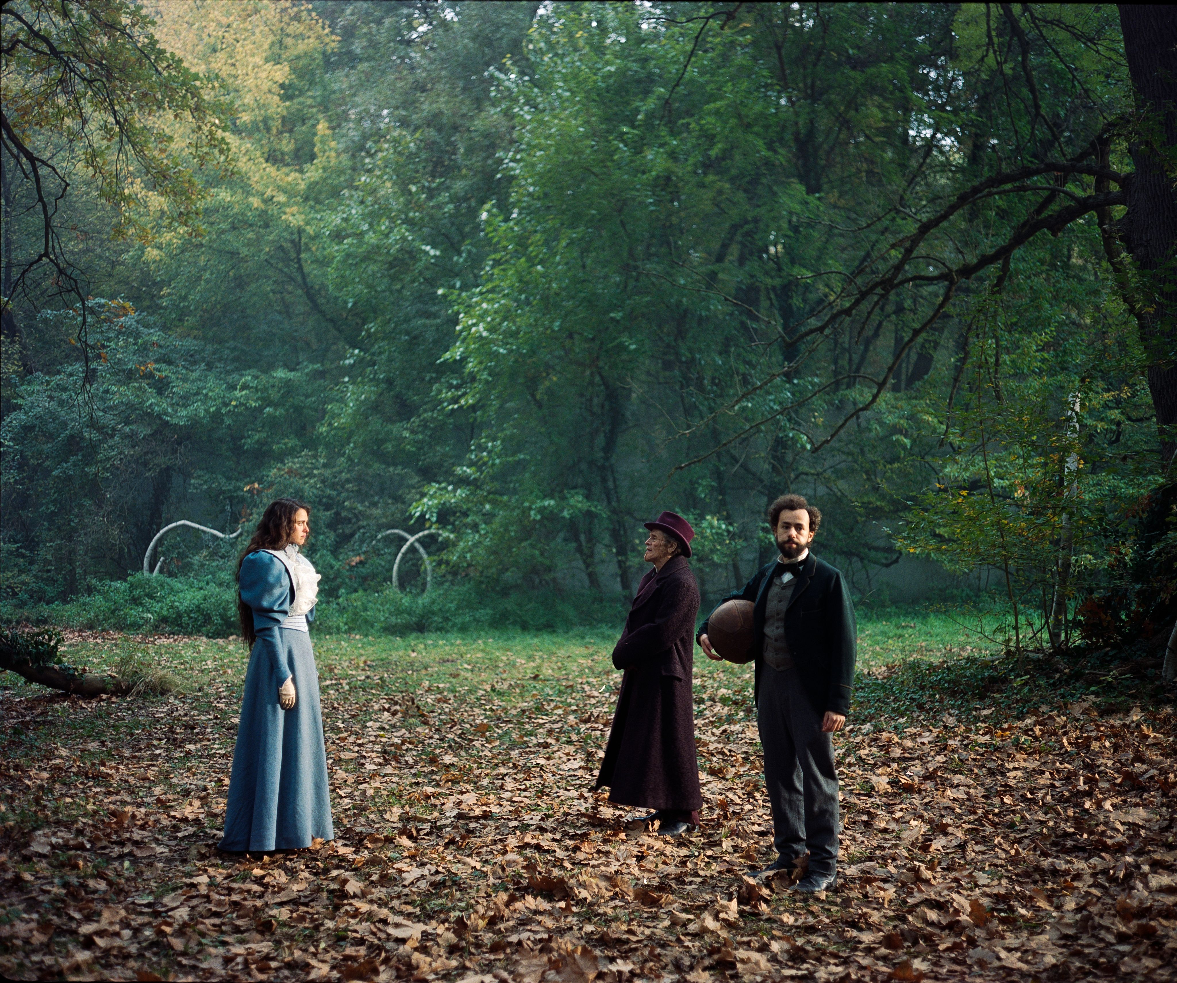 Rather than filming on location, the whimsical sets were built from scratch in Budapest studios, with painted backdrops and LED screens completing the picture. Heath was inspired by Albert Guillaume’s satirical, futuristic drawings from the early twentieth century. “We always tried to imagine that this story was set in a past time, but with the vision of the future,” she explains.