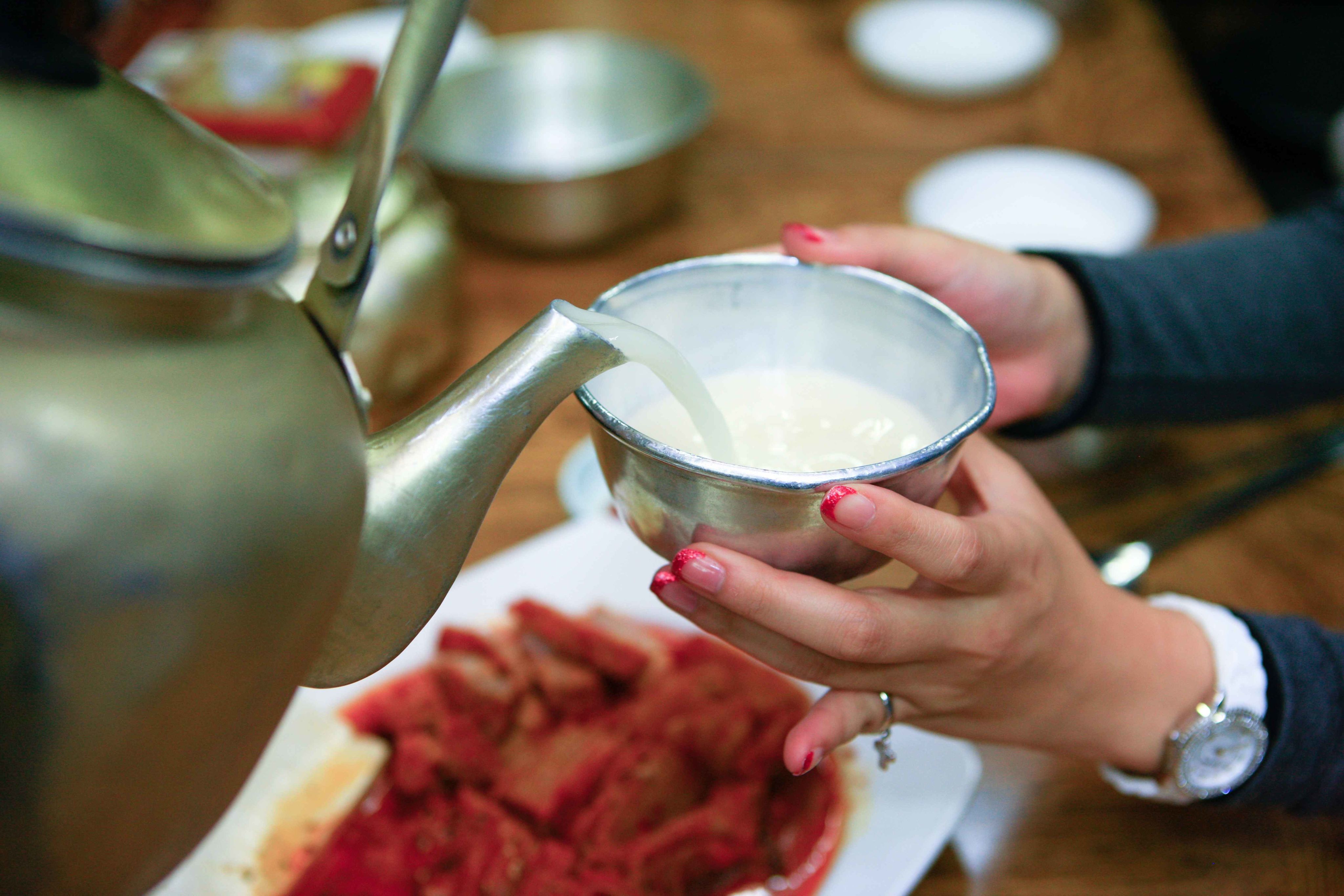 Makgeolli, a milky, lightly sparkling rice wine