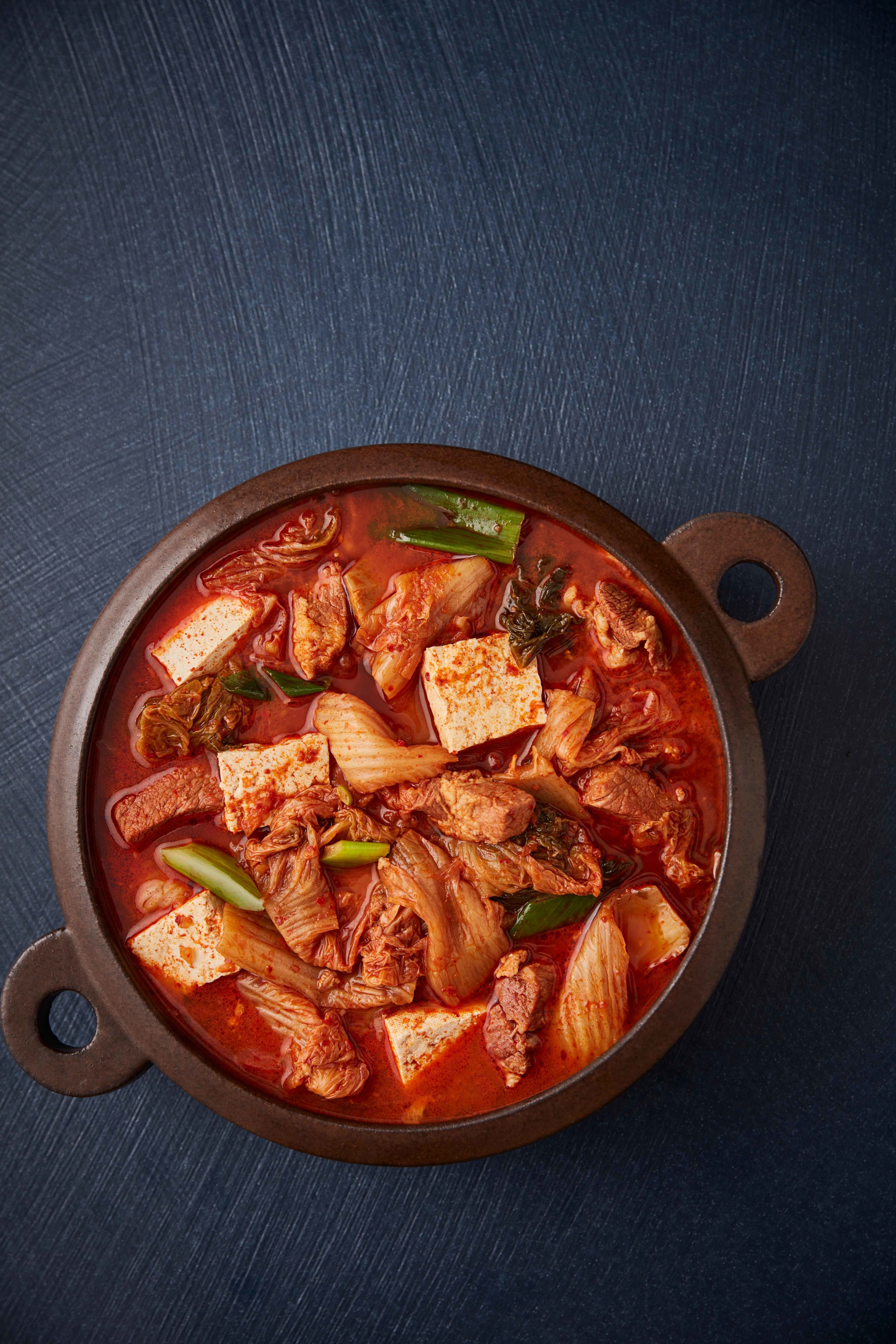 The classic heart-warming kimchi-jjigae, or kimchi stew